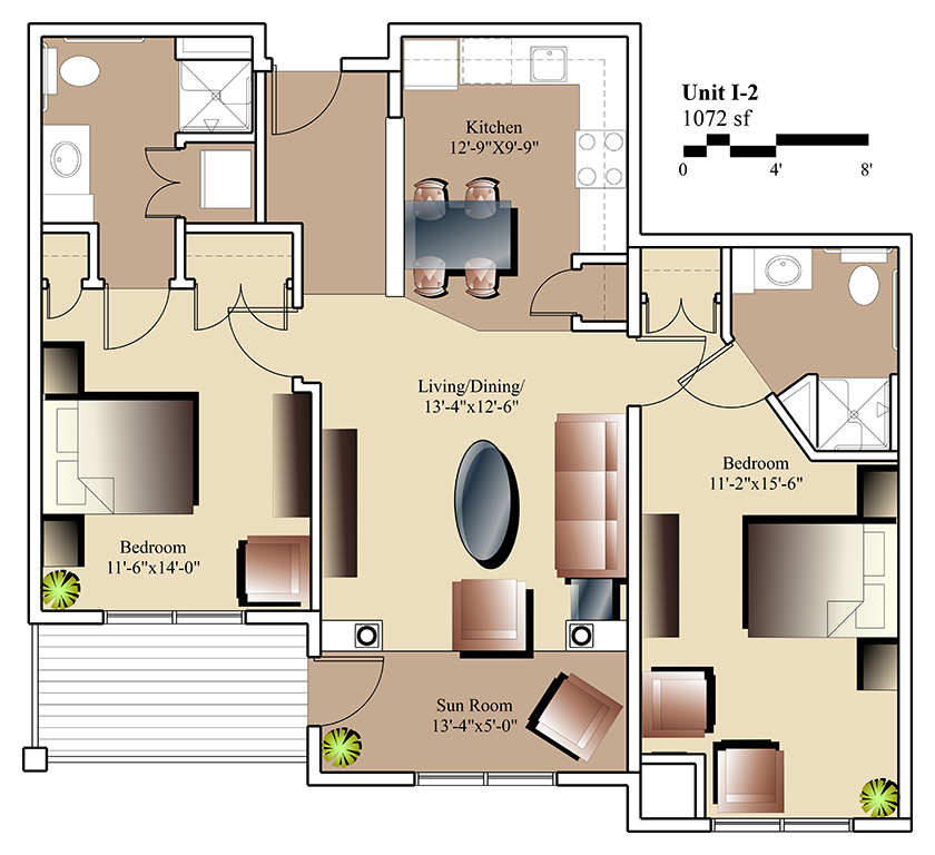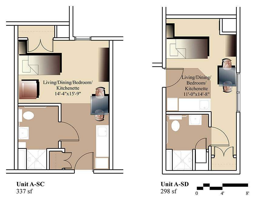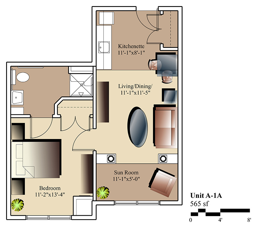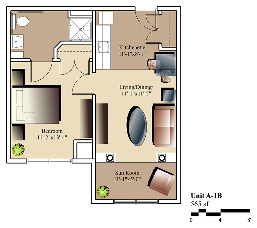 Cedarbrook Village features 119 spacious apartments, including studios, one bedrooms, and two bedrooms each featuring resident controlled individual heating and cooling options.