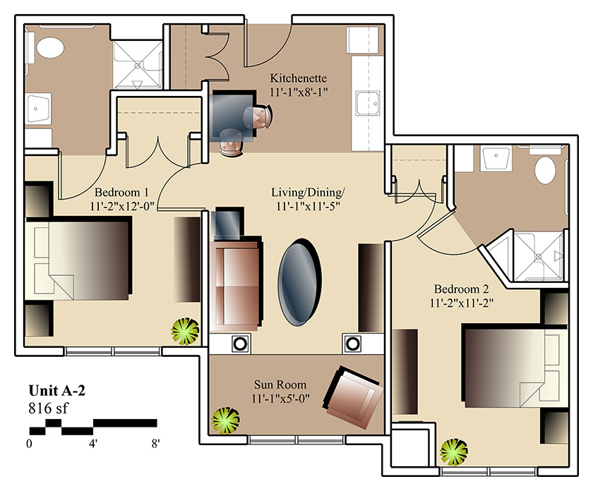 Cedarbrook Village features 119 spacious apartments, including studios, one bedrooms, and two bedrooms each featuring resident controlled individual heating and cooling options.