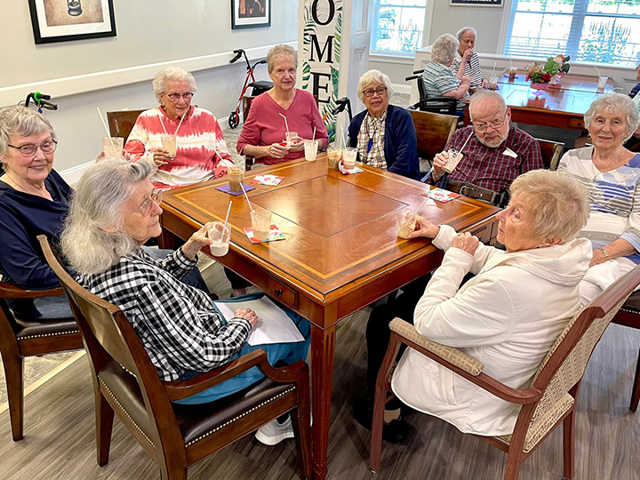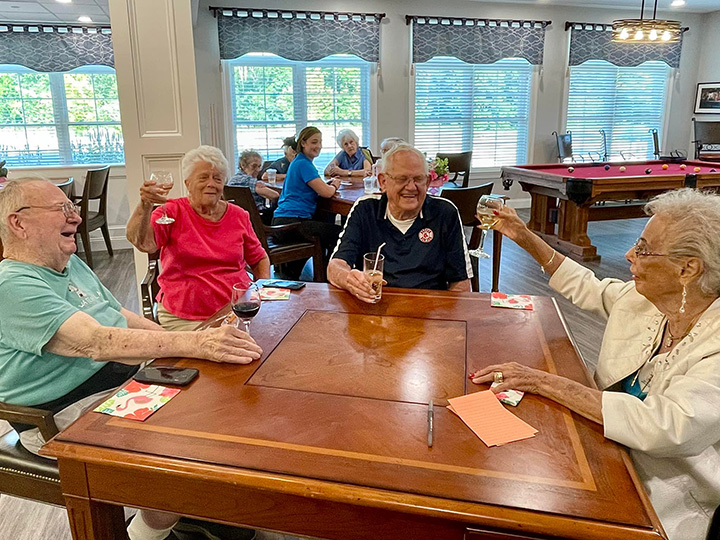 We love socializing during Happy Hour! Residents love to gather and have a drink, watch some entertainment, play cards, and talk with friends!