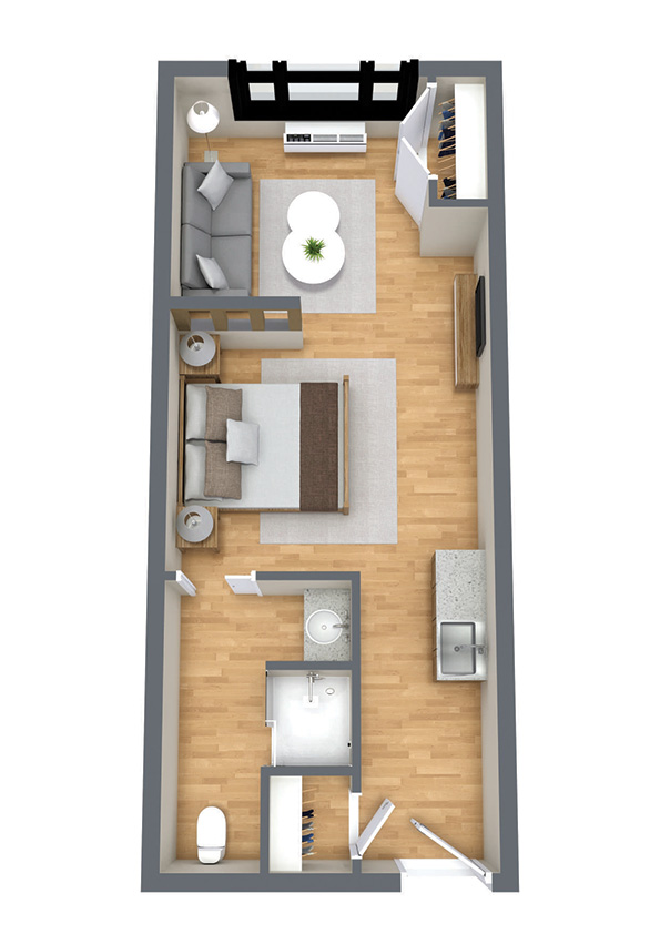 Lunabrook Village features two enclosed courtyards which provide safe wandering spaces, a commercial kitchen with a quaint dining room so families can dine together, a fitness room, pub-style activity space for social interaction, and private apartments each with handicapped accessible bathrooms.